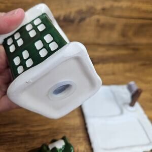 Flaw:some yellowing to the glue around mailbox. Chip to bottom of house. Veining present that's common to ceramic.