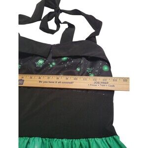 Christmas Holiday Santa Cat Dress Medium Black Halter Silky Fit & Flair C24