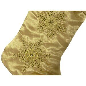 Gold Satin Beaded Snowflakes Christmas Holiday Stocking