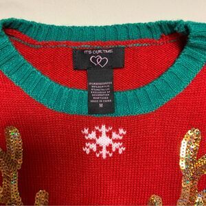 Christmas Holiday Sweater Girl’s Medium Reindeer Sequin Glitter Knit Pullover