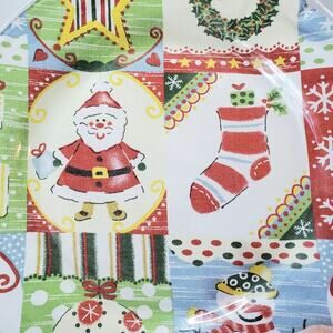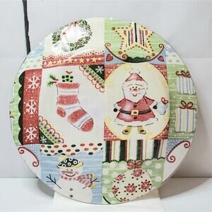 EUC: Festive, green/red/yellow/white/blue holiday glass serving plate/dish with a Christmas theme/clear glass plate/holiday lining underneath. In excellent pre-owned condition with no cracks or chips. **Disclosure: the under lining has air pockets. Hard to picture unless you feel and look closely- structurally intact. Hand wash only.