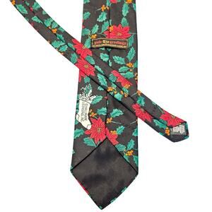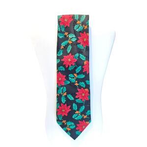 Christmas Holiday Tie Hallmark Yule Necktie Greeting Poinsettia Holly Black USA