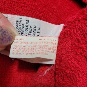 This vintage Christmas holiday towel set features a festive embroidered Joy Wreath design on red cotton towels. Made in the USA by After Bath Luxury J Abouchar & Sons, this four-piece set includes hand and bath towels, perfect for adding a touch of seasonal decor to your bathroom. The towels are machine washable for easy care and are ideal for adults looking to enhance their bathroom with a vintage and collectible touch.