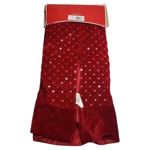 Christmas Holiday Tree Skirt 48 Inch Dark Red Velvet Silver Sequins
