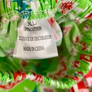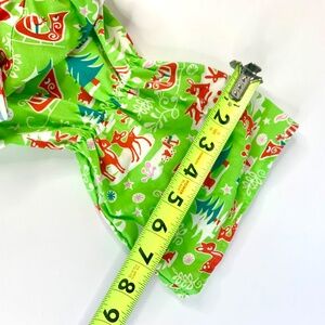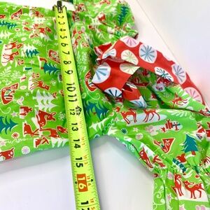 Christmas Holiday red green white reindeer snowflake ruffled bow twirl dress