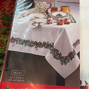 Christmas Holly Bows Oblong Tablecloth CHRISTOPHER RADKO Holiday 60” x 104”