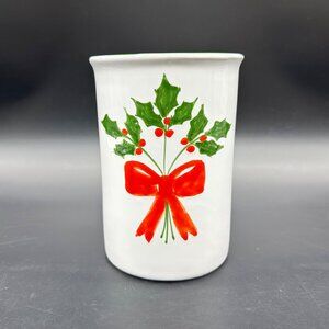 Christmas Holly Utensil Holder Italian Pottery White Red Decoration Italy