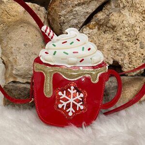 Add some festive cheer to any outfit with this adorable kids’ Christmas hot cocoa crossbody bag!