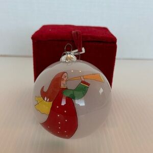 Christmas House Hand Painted Glass Ball Angel Trumpet Music Ornament with Box