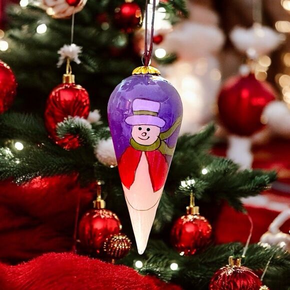 Charming Hand-Painted Glass Snowman Ornament Christmas House Collection