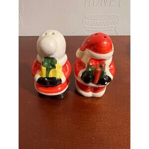 Pre-owned Vintage Christmas House Salt/Pepper Shakers Mr. & Mrs. Claus Kissing & Hiding Gifts