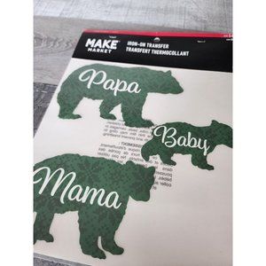 Christmas Iron-on Transfers - Mama Papa and Baby Bear - Green Plaid - DIY Crafts