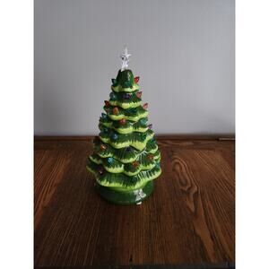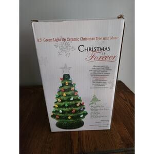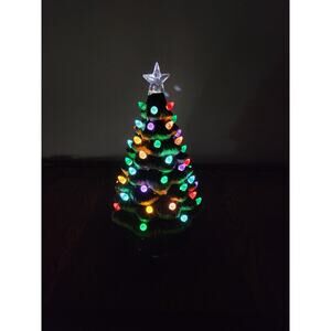 Christmas Is Forever Ceramic Green Light Up Christmas Tree (7.5 In/Multicolor)