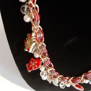Christmas Jingle & Joy Holiday Ribbon Charm Necklace New