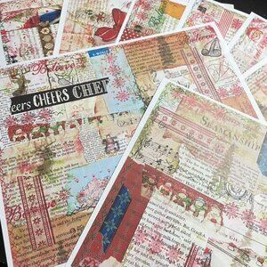 This Christmas Junk Journal Ephemera Collage Prints from Pleasant Creations Shop offers a grunge look with red, green, blue, and white hues. Made of paper, these 10 pages feature a non-bleeding, watermark-free holiday theme.