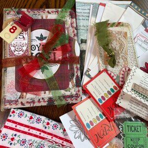 Christmas Junk Journal Includes Charm u Washi Fabric Wrap Tons Ephemera Handmad