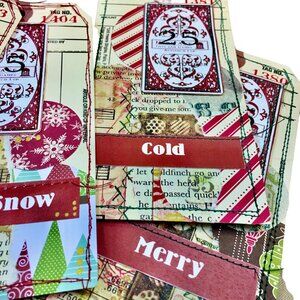 Christmas Junk Journal Tag Ephemera Lot 10 mq Handmade Sewn Scrapbook Embellishm