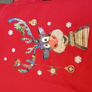Christmas Kook holiday sweatshirt. Celebrate the holiday season with a pop art representation of Rudolph with his antlers decorated like a tree with ornaments.