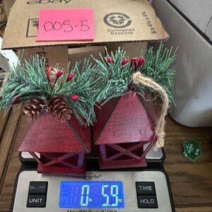 Christmas Lantern Ornament Set 5in Pinecone Berry Accents Holiday Rustic New Red
