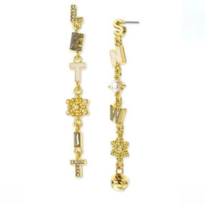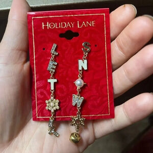 Christmas Let It Snow Mismatch Linear Gold Tone Drop Earrings NWT