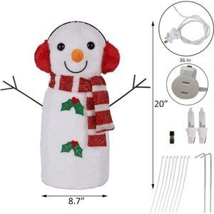 Christmas Lighted Decor 20" Snowman, 25 Lights 3D Snowman with Christmas Scarf