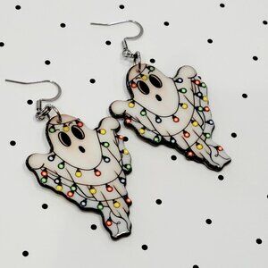 Christmas Lights Ghost Earrings Stainless Steel Hooks Holiday Horror Ghoul NEW