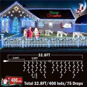 Christmas Lights Outdoor Decor 400 LED 33ft 8 Modes Curtain Fairy String Light