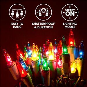PREMIUM QUALITY. Our Xmas Multi-color Christmas String Lights are designed with strong durability to accommodate harsh weather conditions. The high efficiency Christmas lights are environment-friendly and save power for you! Includes spare bulbs, flashers, and fuses. If one bulb burns out, the others stay lit.
