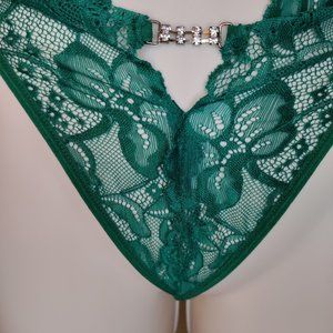 Christmas Lingerie Teddy Lingerie Green Halter V Neck Lace Bodysuit