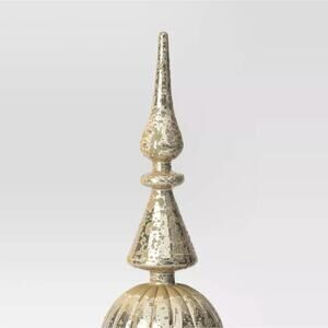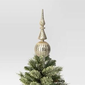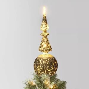 Add a sparkling finishing touch to your holiday display with this Lit Finial Tree Topper from Wondershop™. Made from plastic, this curvy tree topper in vintage finish gold and silver shades makes a radiant, glamorous Christmas decoration. It showcases a classic finial ornament design with a festive glow, creating a celebratory look. Plus, it easily attaches to the top of your real or artificial tree.
