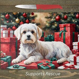 Christmas Maltese Kitchen Tempered Glass Cutting Board or Trivet