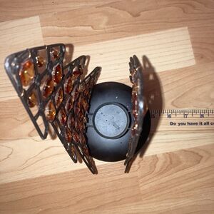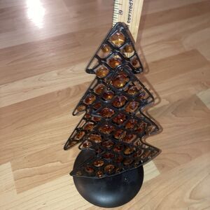 Christmas Metal Candle Holder Dual Trees w/ Amber Beads Holiday Votive Decor
