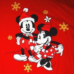 Christmas Mickey & Minnie T-shirt, Red, Ladies Size Large, Snowflakes, Santa Hat