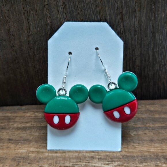 Christmas Mickey Mouse Earrings Pierced Disney Dangle Drop Jewelry Handmade NWT