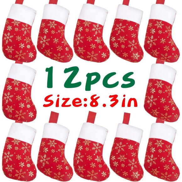 Christmas Mini Stockings,12 Pcs Felt Glitter Snowflake Stockings for Christmas T
