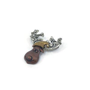 Christmas Moose Brooch Tri Color Metal