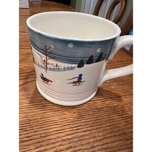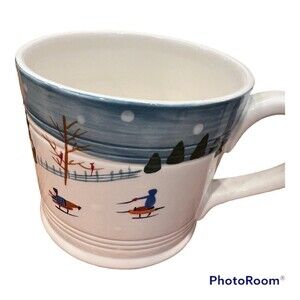 Bath & Body Works~Large Holiday Winter Christmas Mug 1997 Handcrafted Winter scene~sled riding, snowman, snow Perfect for hot chocolate,coffee,tea or soup. Measures~4 1/4" tall Rim to rim-5 x 5" Bottom- 4 3/4 x 4 3/4"