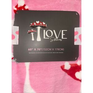 DETAILS: Christmas Mushroom Hearts Luxury Plush Throw Blanket Barbie Pink Christmas tree 50 x 70