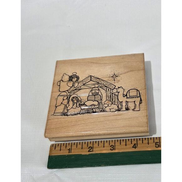 This is a pre-owned Christmas Nativity wood mounted rubber stamp. It is in great condition and ready for your holiday crafting projects. Get ready to add a touch of handmade charm to your Christmas cards, gift tags, and scrapbook pages with this delightful stamp! The stamp creates a crisp and detailed image every time. Let your creativity shine and spread the joy of the season with this wonderful Christmas Nativity rubber stamp.