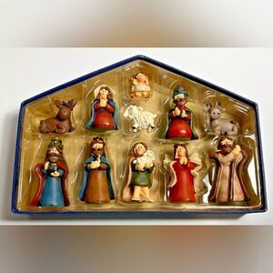 Christmas Nativity Set Scene 11 Piece Resin Figurines With Felt Applique Box Vtg