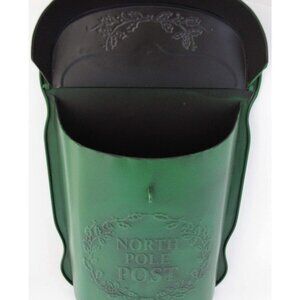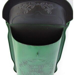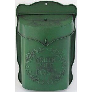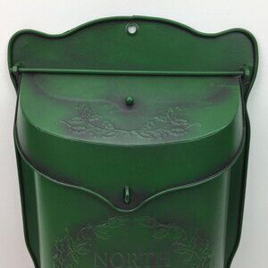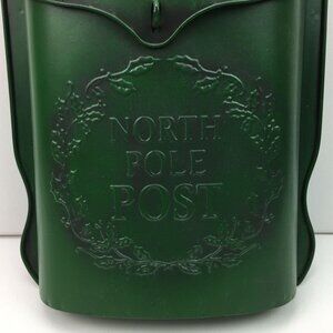 North Pole Post Santa’s Green Tin Mailbox Christmas Holiday Metal Decor 15.5"