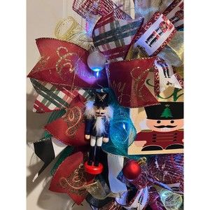 Christmas Nutcracker Holiday Ribbon Door Wreath Handmade 22 ins LED W3