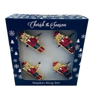 Christmas Nutcracker Napkin Rings Set of 4 Holiday Red Navy Gold 2.5in New