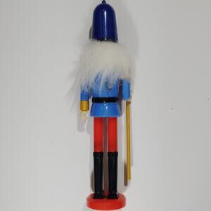 Christmas Nutcracker Soldier Figure Plastic 9" Holiday Decor Blue Red Gold Staff