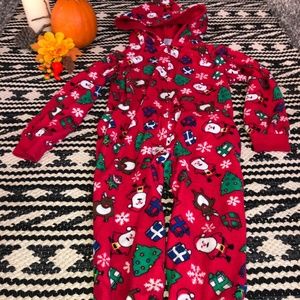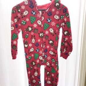 Hood has Santas, snowmen, Christmas trees, presents, and snowflakes.