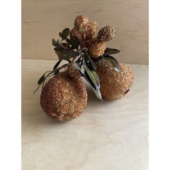 Christmas Ornament Bronze Gold Sparkly Pear Sparkles Beads Fruit Cluster