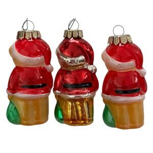 Christmas Ornament Glass 3 Teddy Bears Santa 3 1/2" Tall Vintage Holiday