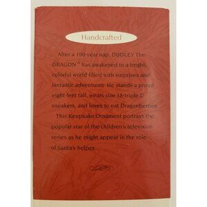 1995 Hallmark Keepsake Ornament, "Dudley the Dragon" Ready to help Santa In Box Hand Crafted....