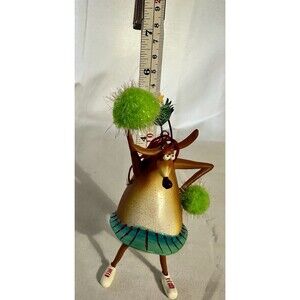 Christmas Ornament Reindeer Dressed As Cheerleader w/pom Poms And Skirt Funny 6”