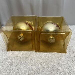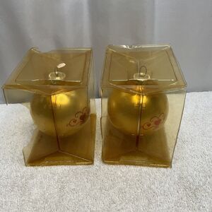 Two Christmas Ornaments are in there packaging and have not been used. The plastic packaging is not in great condition and the balls do show their age, however overall in acceptable collectable condition, but NOT MINT.